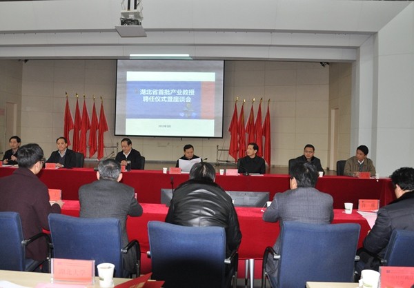 湖北省教育廳副廳長歐陽建平主持聘任儀式,省委人才辦專職副主任劉仲初宣讀了《省教育廳關(guān)于公布首批湖北產(chǎn)業(yè)教授的通知》,省委高校工委書記、省教育廳廳長劉傳鐵等為23名獲聘產(chǎn)業(yè)教授頒發(fā)了證書,14所聘任高校校領(lǐng)導(dǎo)為產(chǎn)業(yè)教授頒發(fā)了聘書。