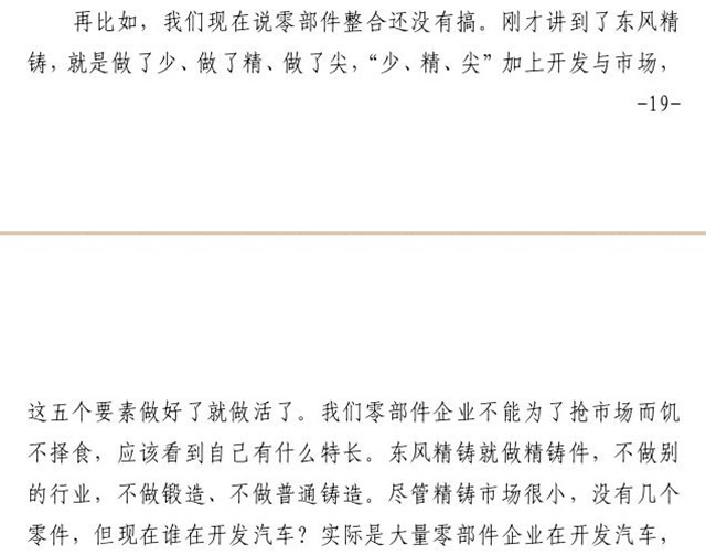 在2016年7月23日東風(fēng)汽車公司2016年年中工作會(huì)上,東風(fēng)汽車公司董事長(zhǎng)、黨委書(shū)記竺延風(fēng)同志對(duì)東風(fēng)精鑄改革與經(jīng)營(yíng)管理等方面的做法給予了充分肯定,要求東風(fēng)公司相關(guān)單位予以借鑒,并深入推進(jìn)各單位改革與創(chuàng)新工作。