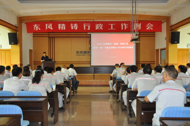 根據東風汽車零部件(集團)有限公司黨委統一安排,826日下午2點,零部件集團“兩學一做”專題黨課暨2016年形勢目標教育會在東風精鑄會議中心召開,東風精鑄領導班子成員、中層管理人員、班組長、黨員代表以及員工代表與會。